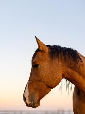 Our horse, Little Man, pauses for a brief moment to take in the sunset.