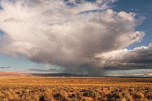 A rainstorm produces a rainbow near Page, Arizona.