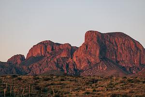 The sun comes up on the Chisos Mountains.